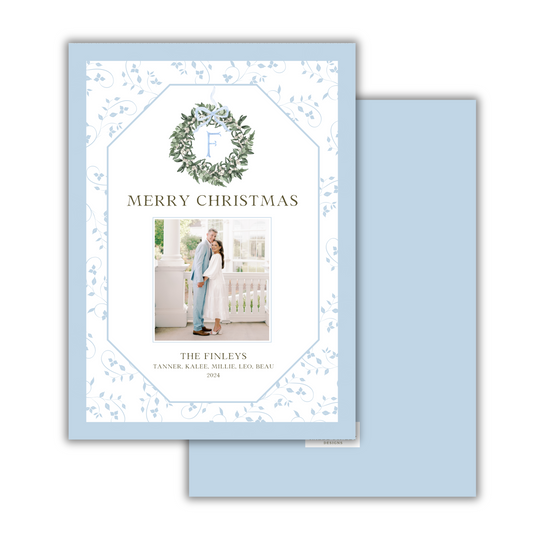 Blue Monogram Christmas Card